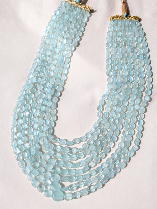 Aquamarine Smooth Oval Graduated Beads 6.5x7.5–12x14mm Milky Blue | 16–22 inch